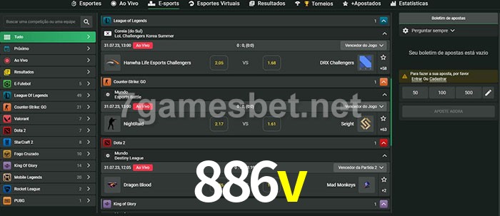 A aposta 886v oferece aos jogadores a experiência mais conveniente de apostas em eSports!